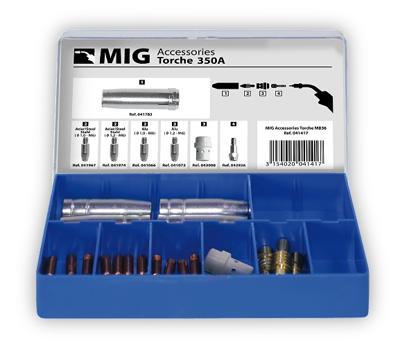 Набор газовых дюз, токовых наконечников и пр. для сварочной горелки 350А (сварка стали и алюминия).