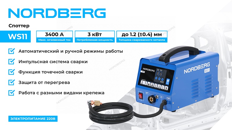 Точечный сварочный аппарат NORDBERG WS11 – высококачественное оборудование для выполнения большинства операций в автосервисном кузовном ремонте.