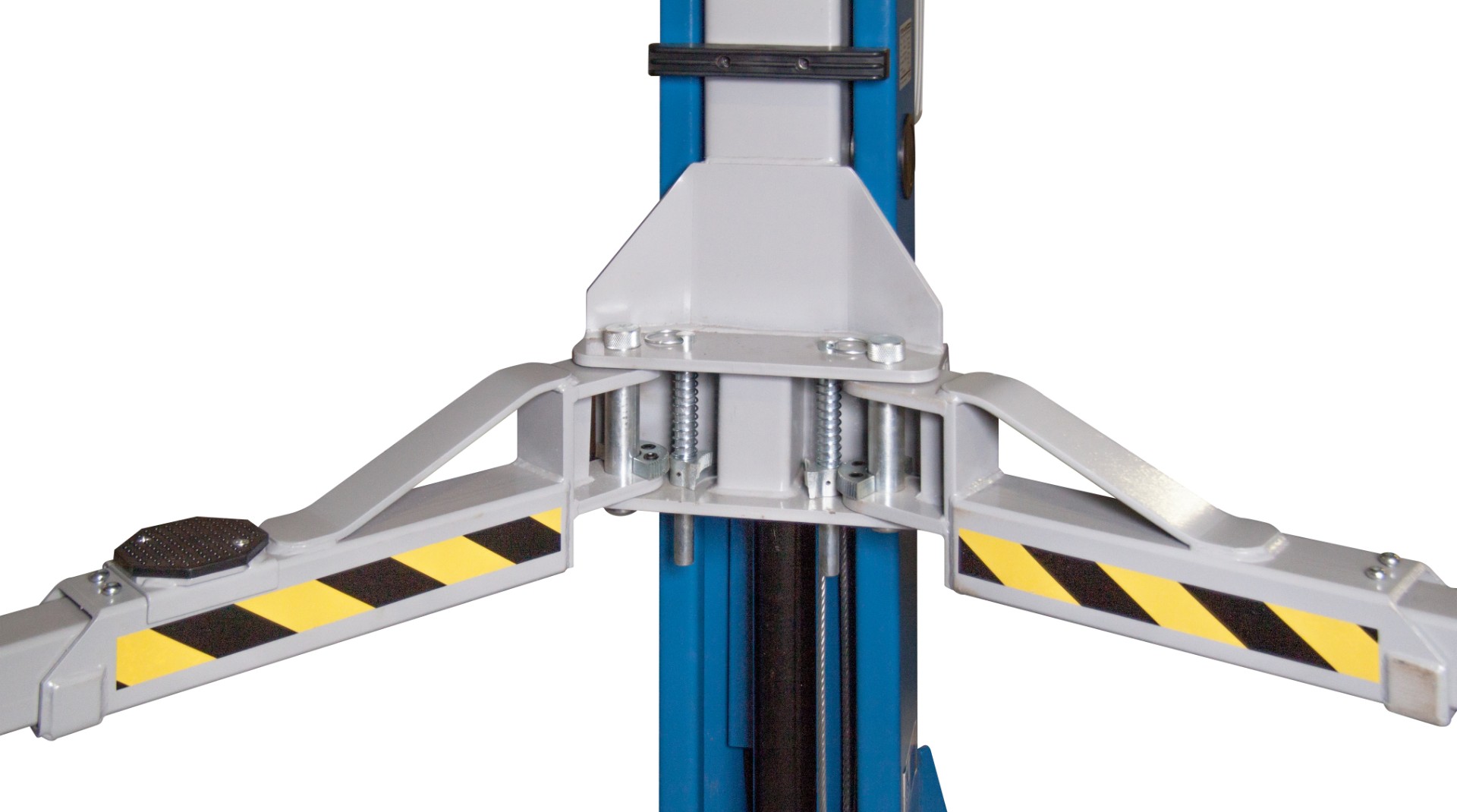 На подъемнике стоят механические стопора, но снятие происходит с одной колоны с помощью рычага.
