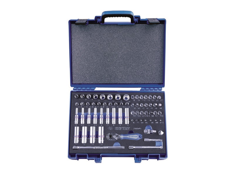 Набор с инструментом торговой марки KING TONY включает в себя торцевые головки и принадлежности, предназначен для монтажа и демонтажа крепёжных узлов различных изделий, устройств и агрегатов. Материал ложемента – EVA (ЭВА, этиленвинилацетат). При своей лёгкости, этот материал обладает высокими прочностными характеристиками, стойкостью к маслам и растворителям, при деформации возвращает прежнюю форму.