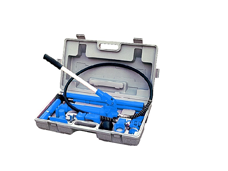 Набор аксессуаров для кузовных работ в пластмассовом кейсе. Включает гидроцилиндр и ручной насос.